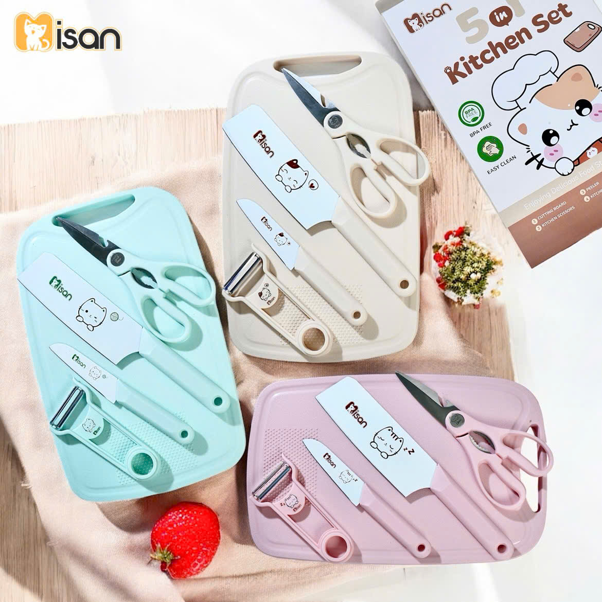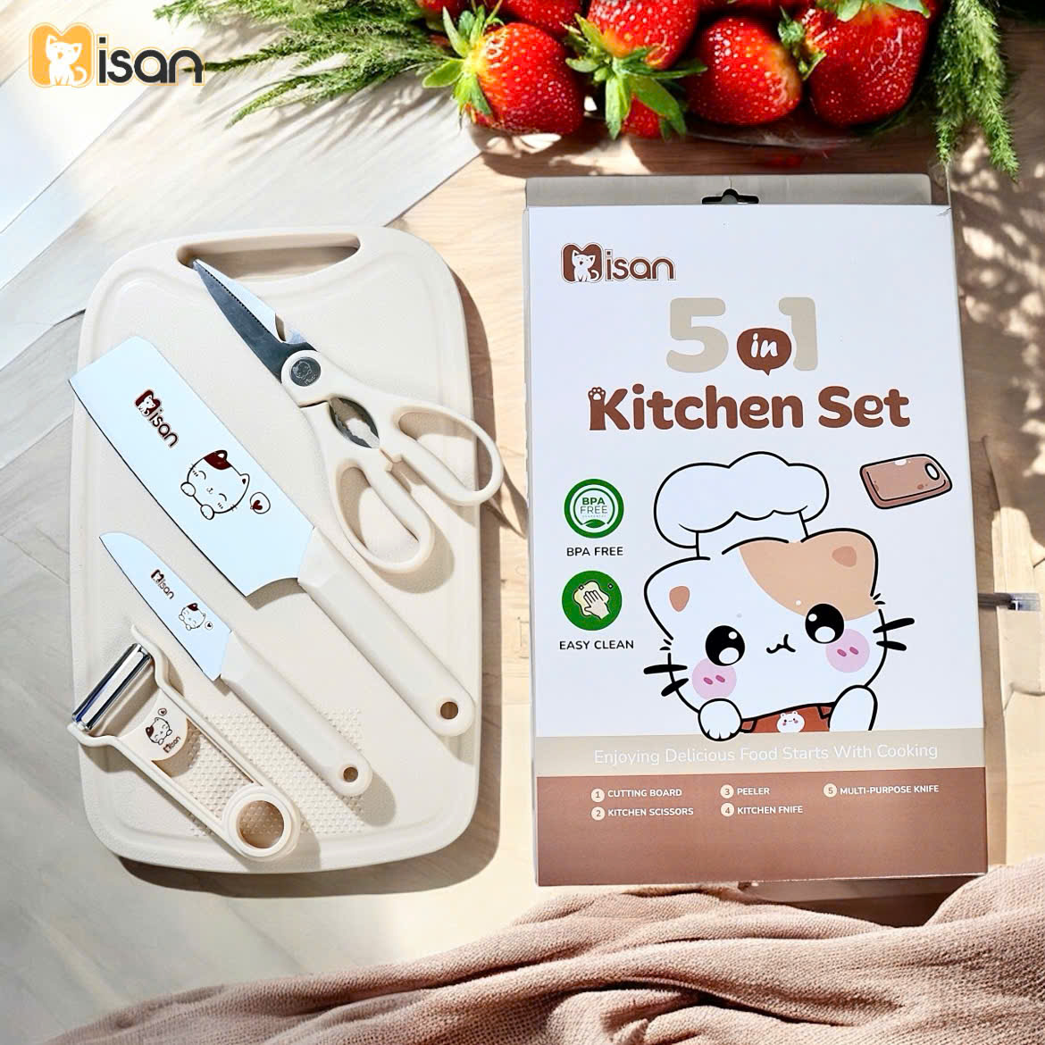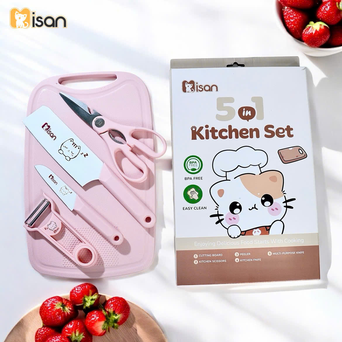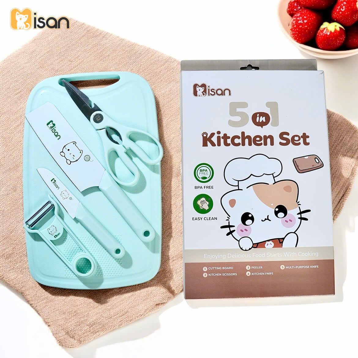 Bộ dao thớt 5in1 Misan Kitty The Chef